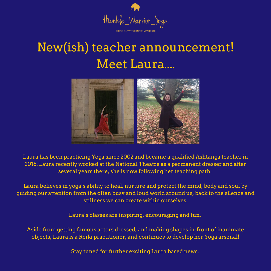 Laura has been practicing Yoga since 2002 and became a qualified Ashtanga teacher in 2016. Laura recently worked at the National Theatre as a permanent dresser and after several years there, she is now following her teaching path.